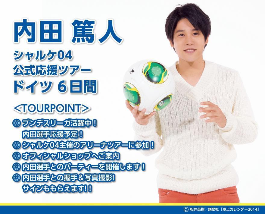 緊急募集! 若干数の追加設定ができましたので募集いたします。 <TOUR POINT> ・ブンデスリーガで活躍中!!Explore #内田篤人応援ツアー当選 at Facebook 今年も内田篤人応援ツアーの募集が開始されました! 募集期間 atsuto mobile 先行募集 13年11月1日(金) 1800 〜13年11月15日(金) 1800 一般 13年11月27日(